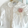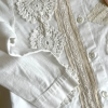 It has a cute Peter pan collar and delicate hand-sewn details such as lace and floral additions.