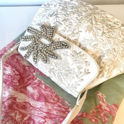 SOLD OUT White Beaded Vintage Clutch with Pink Embroidered Flower
