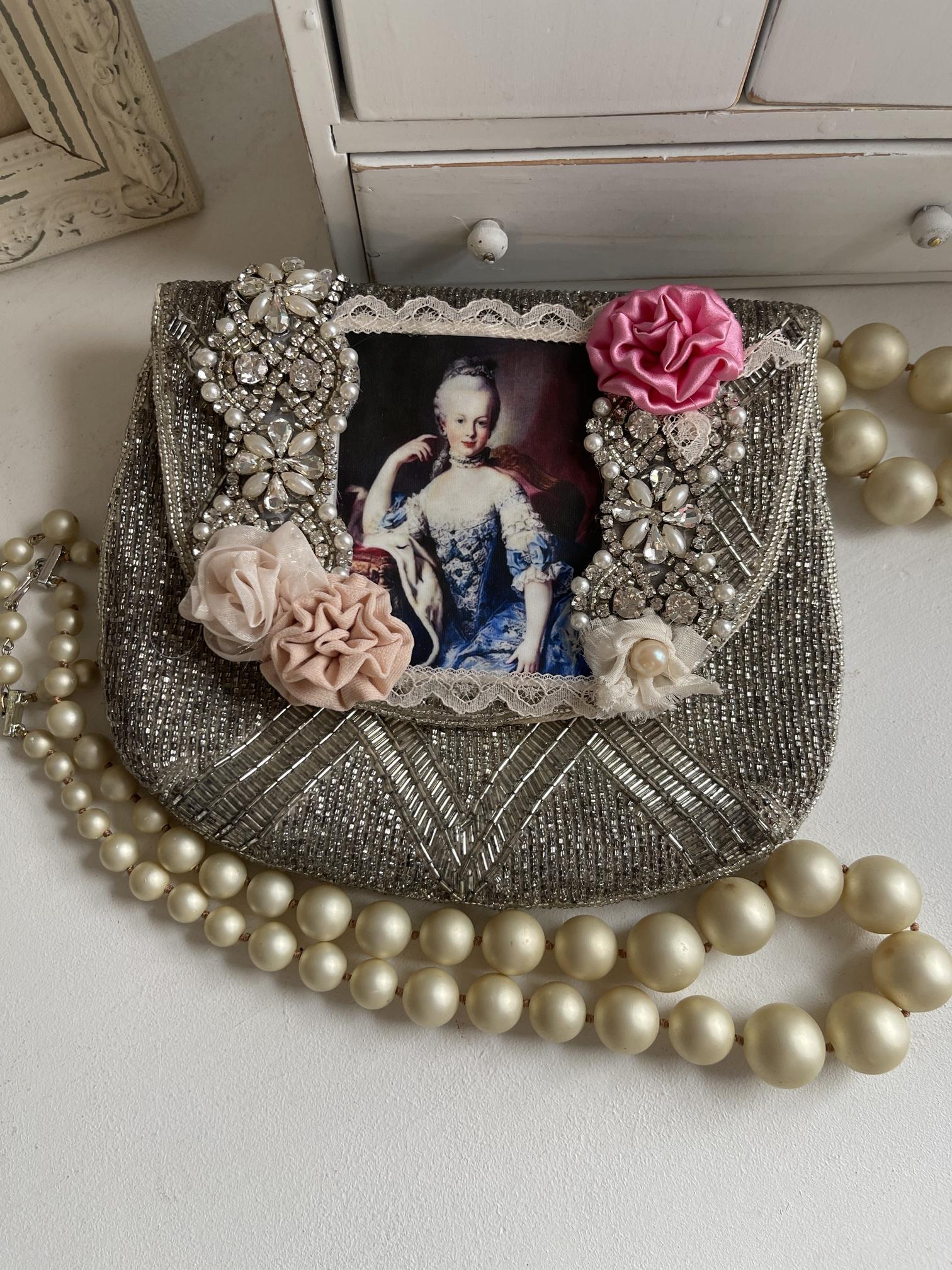Each bag in my Laura Madrigano Colelction is a one of a kind peice that starts off as either a vintage bag that I find or sometimes one I make in my design studio or from my Lura Madrigano pattern archive from my days as a designer in NYC.